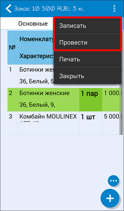 - По окончании оформления документа нажать «Провести» или «Записать».