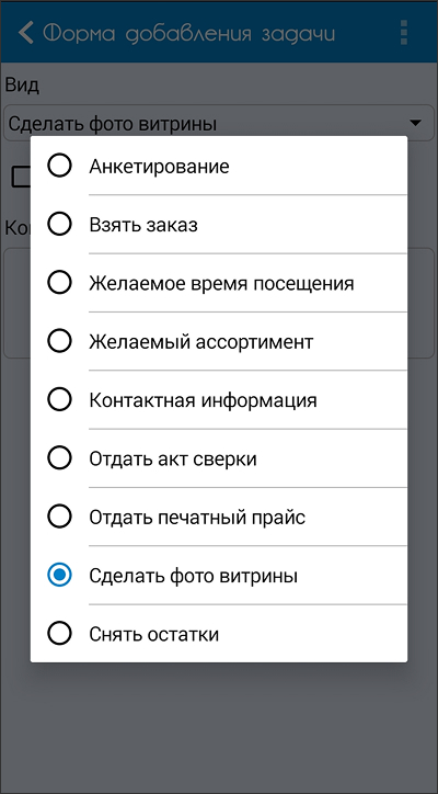 Задания — это перечень задач, которые торговый агент должен выполнить при посещении партнера.