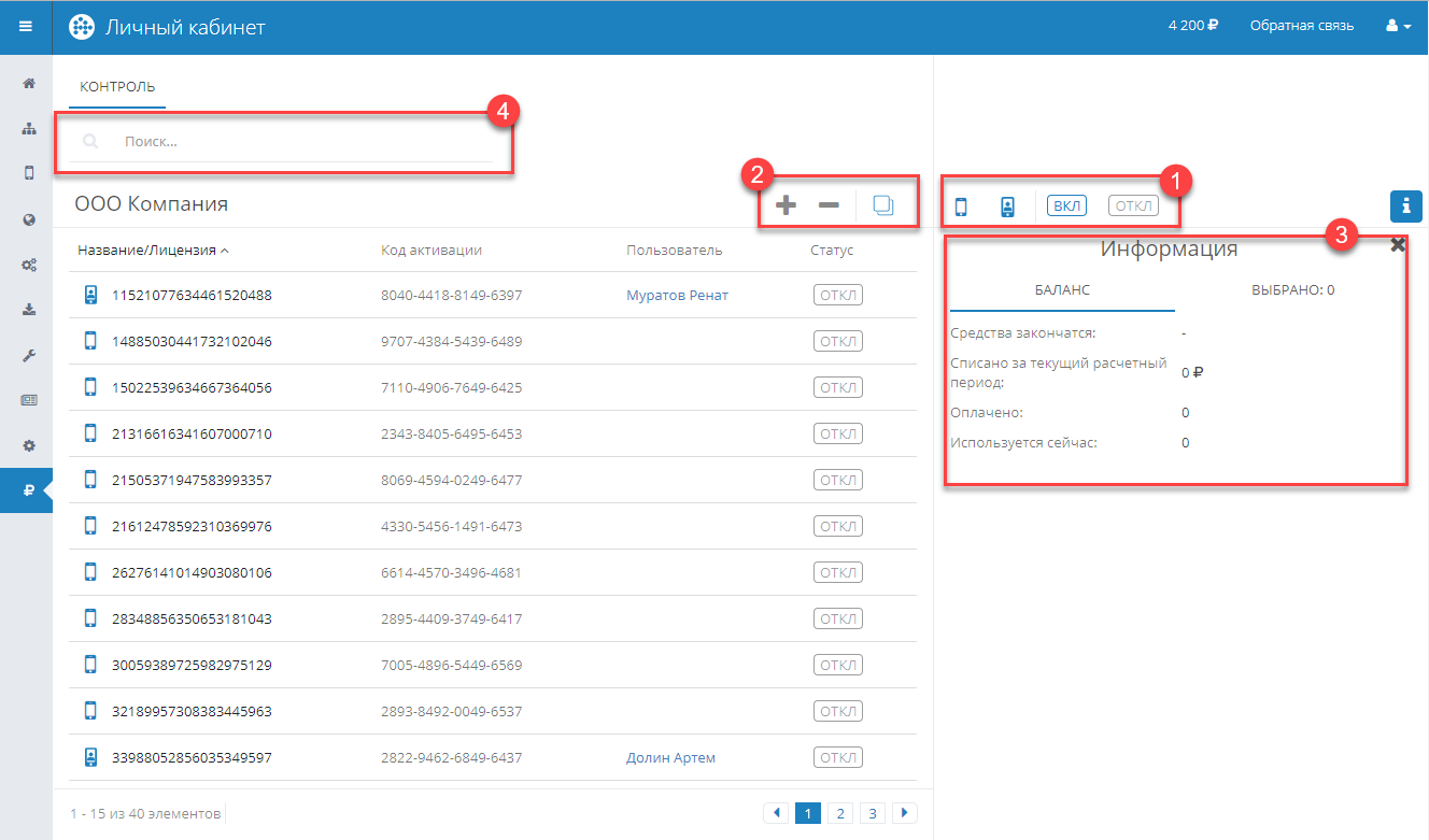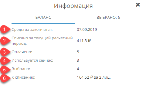 4 - Количество лицензий в сервисе на текущий момент. Если оно меньше количества оплаченных лицензий (см. п.3), то можно включить лицензии без дополнительного списания средств.