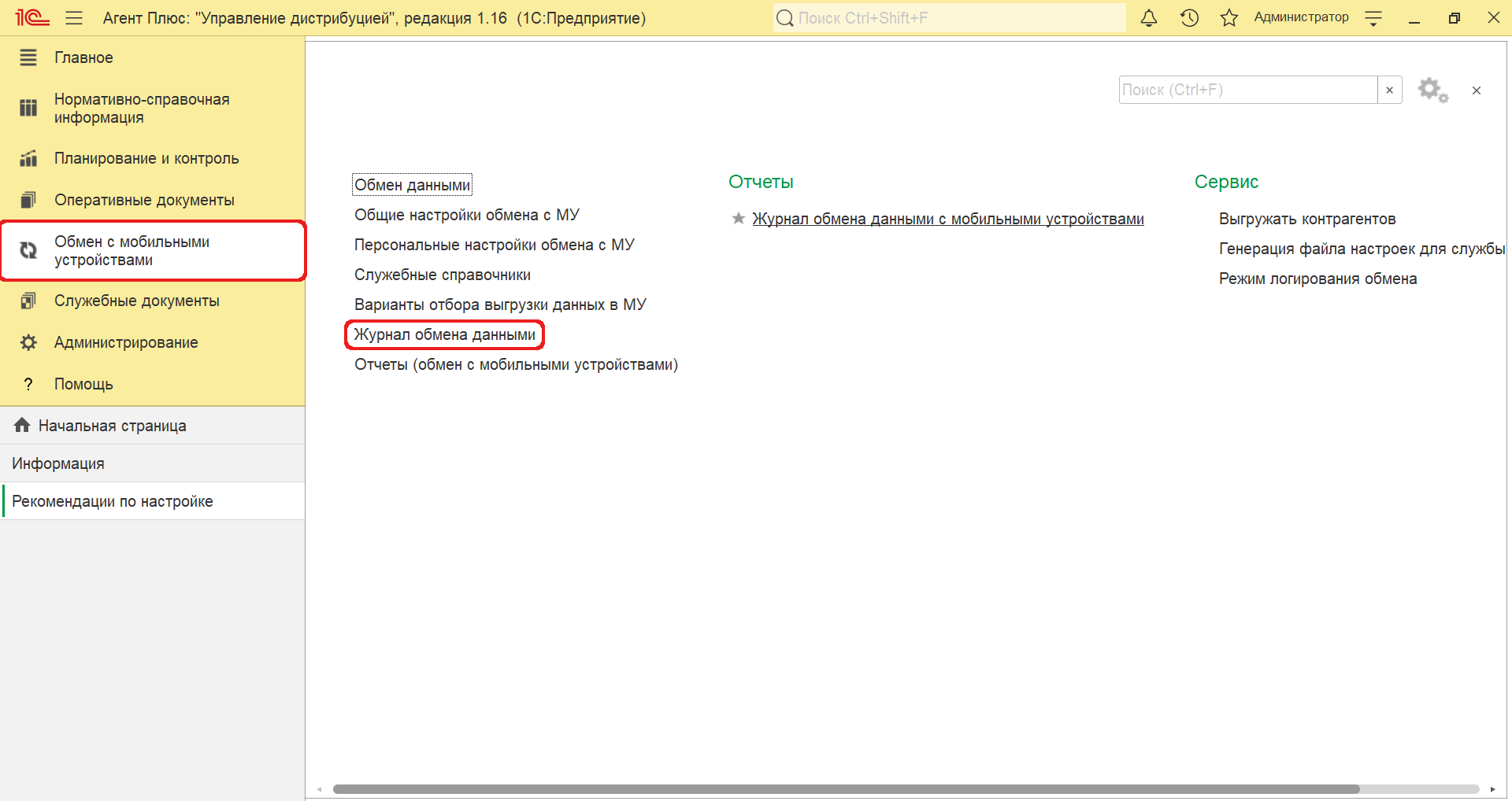 Чтобы открыть журнал, нажмите в правой панели меню раздел «Обмен с мобильными устройствами» → «Журнал обмена данными».