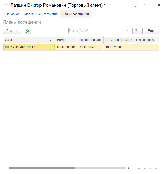 Для быстрого доступа к планам посещения торгового агента можете перейти по ссылке «Планы посещений» вверху окна редактирования торгово агента.