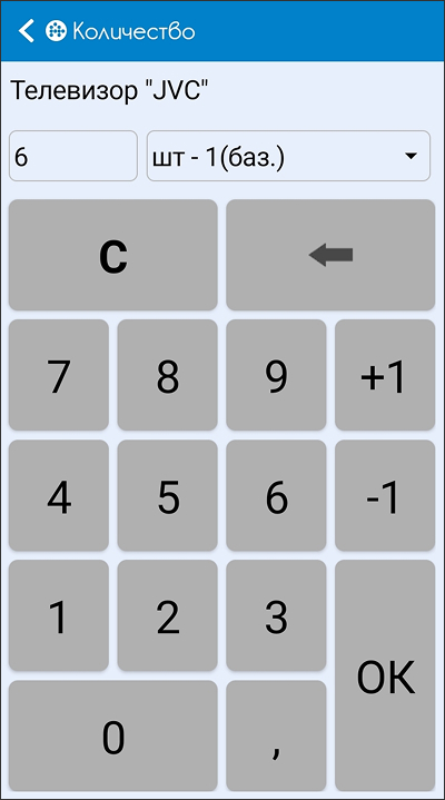 Ошибочно введенную цифру можно удалить, нажав кнопку («Удалить последнюю цифру»). Добавить к введенному количеству единицу или отнять единицу можно нажатием кнопки («Увеличить на единицу») или кнопки («Уменьшить на единицу») соответственно.