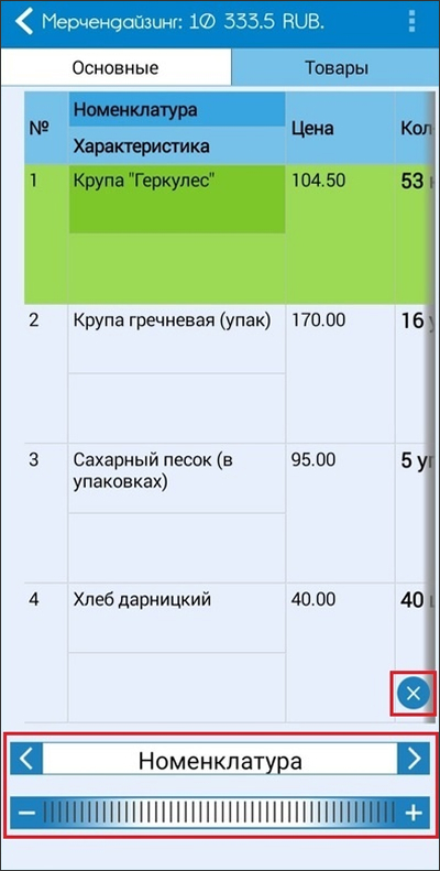Изменение высоты строк в таблицах в журнале документов, в табличной части документов и в других таблицах возможно при помощи функции «multi-touch» или «множественного касания» – сведения/разведения двух пальцев на экране МУ.