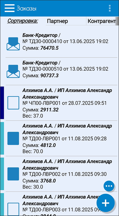 В зависимости от разрешения экрана МУ или заданной пользователем высоты строк в табличной части документов, окна приложения могут отображать не всю представленную информацию. Возможность просмотра всей информации в окне осуществляется при помощи вертикальной прокрутки. Чтобы прокрутить текущую закладку или документ вниз, следует сделать движение пальцем снизу-вверх. Для прокрутки текущей закладки или документа вверх, следует сделать движение пальцем сверху-вниз.
