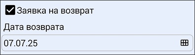 «Заявка на возврат» – установленный флажок позволяет торговому агенту переключать документ «Возврат» в режим «Заявка на возврат». Отображается только в документе «Возврат».