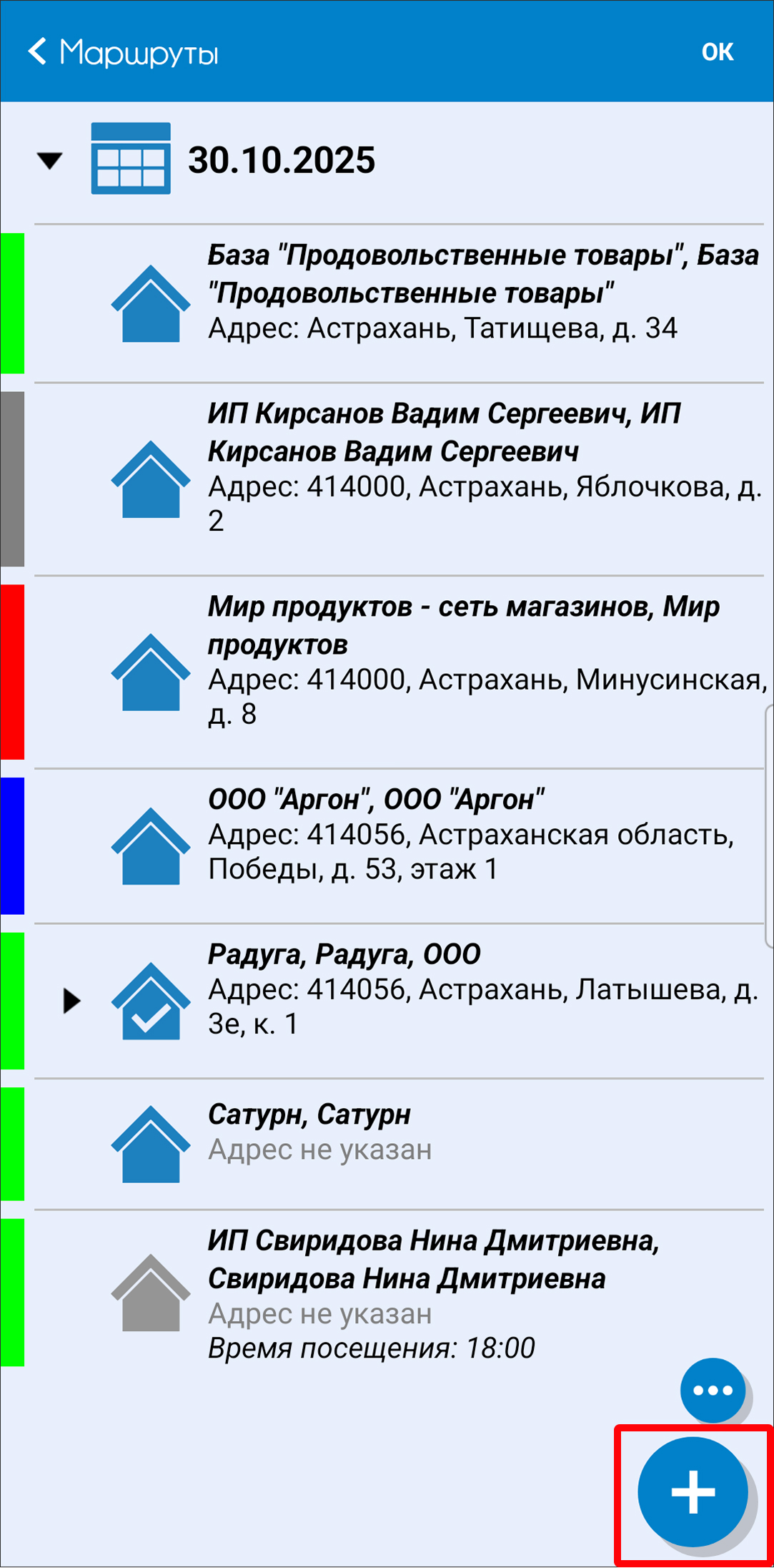 - Добавление новой торговой точки в маршрут.
