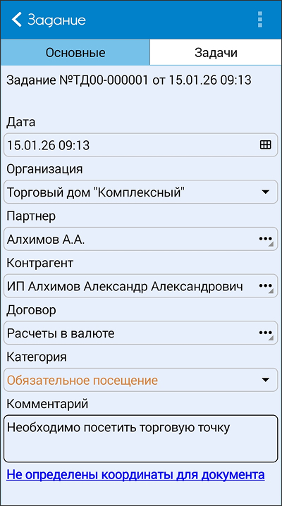 Задания — это перечень задач, которые торговый агент должен выполнить при посещении партнера.