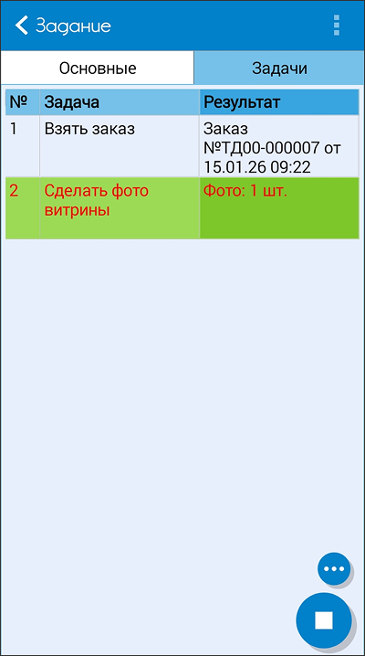 На вкладке «Задачи» отображается список задач для выполнения торговым агентом.
